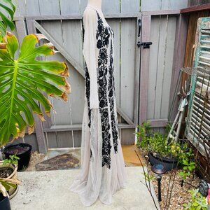 Black Embroidered off-White Tulle Maxi Dress Biya By Johnny Was NWT
