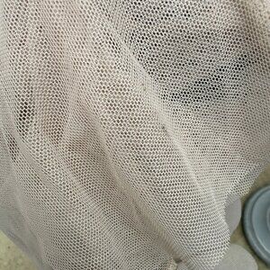 Beautifl off-white soft tulle floor length dress. Long Sleeve. Stunning black embroidery.