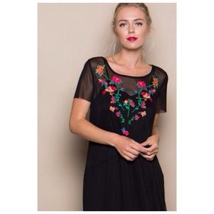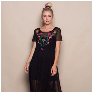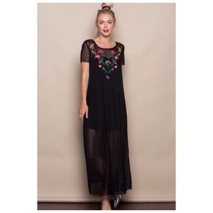 Beautiful black mesh embroidery long dress. Comes with adjustable slip lining. Very light and soft, 100% polyester. Perfect for any occasion.