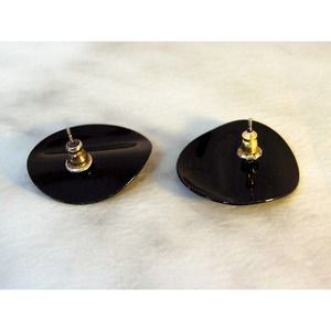 Black Enamel Concave Post earrings measure 1 by 1 inches
