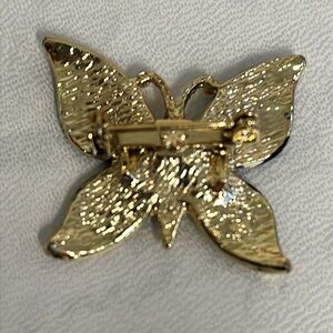 This is a lovely Black Enamel Goldtone 1” Butterfly Brooch Pin.