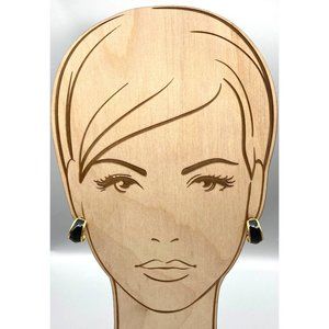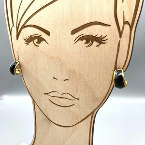 Black Enamel Half Hoop Earrings, Vintage Basic Clip On in Satin Gold Tone