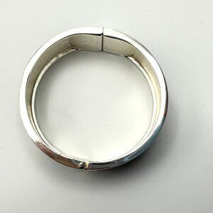 Black Enamel Magnetic Clamper Bracelet Silver Tone Wide Band Size 7 EUC