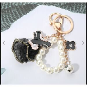 This is a great novelty piece of a Black Enamel Pearl Mesh Dress Keychain / Bag Charm. It's perfect for adding a touch of glamour to your keys or handbag.