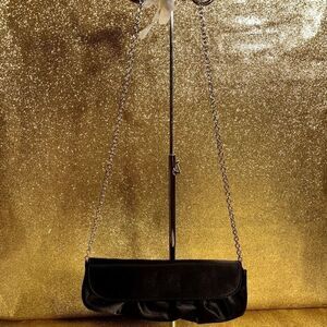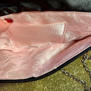 NWOT Danielle Steele Black Evening Bag with pink lace lining