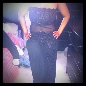 Black Evening Gown with Hand-Painted black sequin around the waist and top front of dress,satin mesh in stomach area, never wore closed boutique
