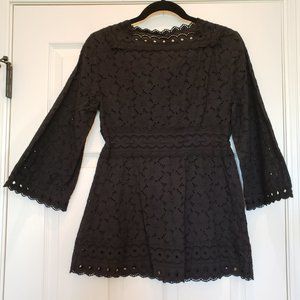 Cute black eyelet tunic top. Great condition. 100% cotton. Hand wash cold. Size Small. Adjustable drawstring waist. Bell sleeves.