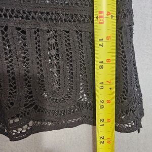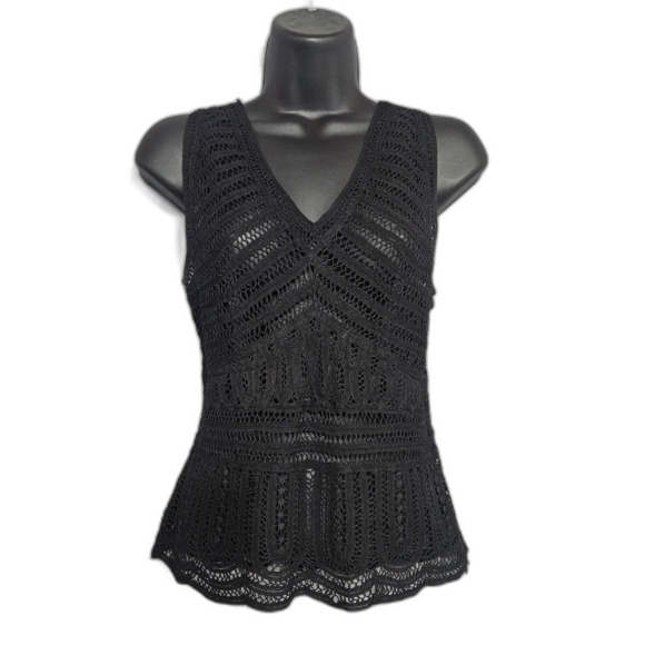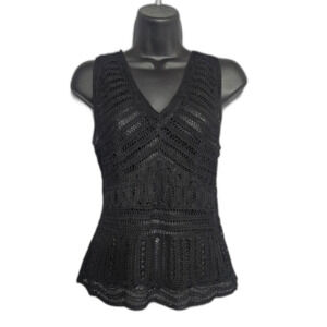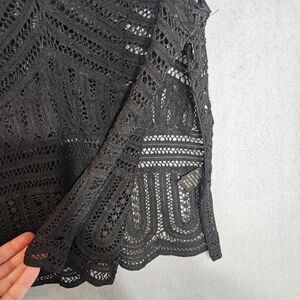 Black Eyelete Lace Gothy Romantic Over Bust Corset Blouse Sheer Fitted Top S/M
