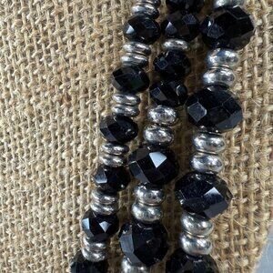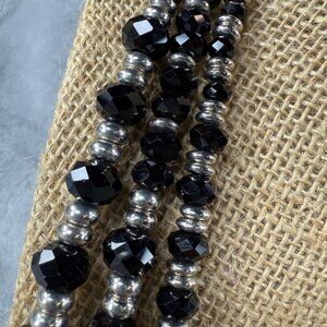 • Faceted black beads paired with silver color accents