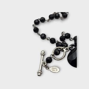 Black Faceted Heart Pendant Convertible Beaded Necklace – Cookie Lee Beaded Toggle Necklace, Silver Tone Beautiful and versatile Cookie Lee necklace featuring glossy black faceted beads and a bold heart-shaped pendant. Designed with a convertible toggle clasp that allows you to wear it in multiple ways — long, doubled, or as a Y-style drop necklace. Despite its statement look, this piece is lightweight and comfortable for all-day wear. Finished with a silver-tone toggle clasp marked Cookie Lee. A timeless, romantic piece that pairs perfectly with everything from a little black dress to casual chic looks. Brand: Cookie Lee Color: Black / Silver tone Convertible toggle clasp design Lightweight construction Large faceted black heart pendant Signed Cookie Lee Approx. 32” total length Pendant size: 1.5” Style: Romantic Glam • Convertible Jewelry • Classic Chic • Modern Gothic