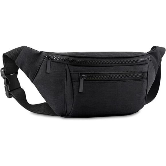 Black Fanny Pack Crossbody Waist Bag for Men Women Travel Running Hiking