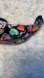 Black Fanny pack with colorful hats and gold zipper in the front.