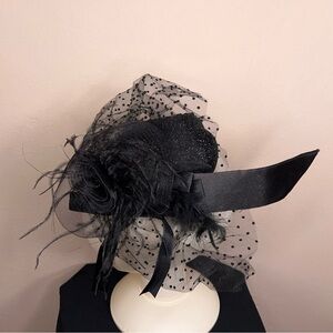 Black Fascinator Lace Mesh Feather Headband Goth Pinup Wedding Formal Event