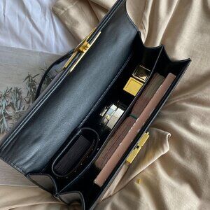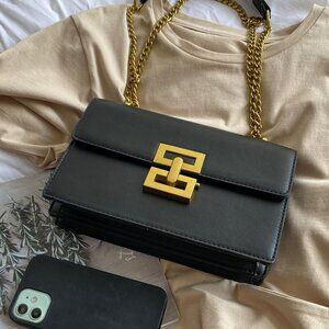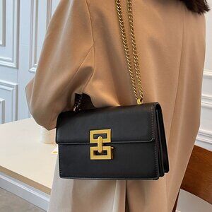 Black Fashionable Women's Minimalist Metal Decor Chain Shoulder Bag Elegant Faux