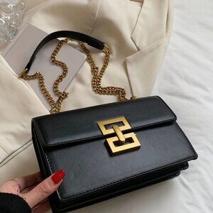 Black Fashionable Women's Minimalist Metal Decor Chain Shoulder Bag Elegant Faux