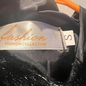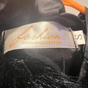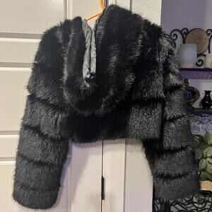 Black Faux Fur Cropped Jacket with Hood, Size Small