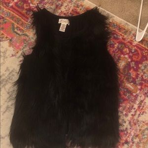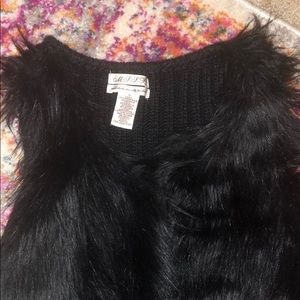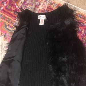 Black faux fur in front and back is knit. Best. Size small. Great condition.