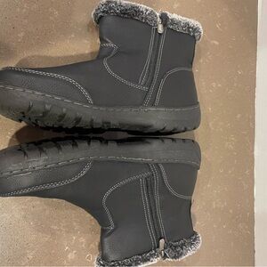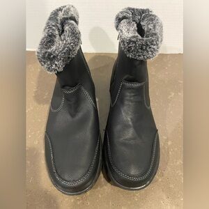 Stylish black ankle boots with faux fur lining. Perfect for cold weather.