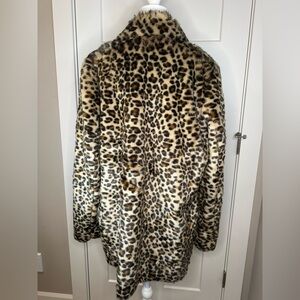 Step out in style in the beautiful one of a kind Leopard Print Faux Fur Jacket in size 16 from Boden. This stylish and versatile outerwear piece is suitable for all occasions. Made with faux fur as the outer shell material, this mid-length coat features long sleeves and a regular fit. The leopard print design adds a touch of wild flair to the classic overcoat style, making it a fashionable choice for the winter, fall, or spring seasons. With its attention to detail and quality construction from a trusted brand like Boden, this coat is sure to become a flattering and chic addition to any woman's wardrobe. Wear to work or a night on the town this is a must have for Fall. Super soft and cozy you will love having this jacket in your closet. On those days when you want to feel confident…this will be the piece you turn to.