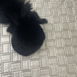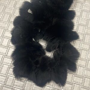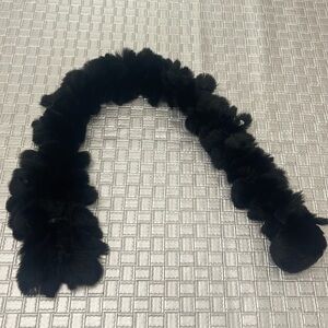 Chic black faux fur scarf with oversized pom pom closure, super soft and cozy, perfect for adding elegance to winter outfits, dressy evenings, parties, or casual wear, one size fits most, versatile wrap style for warmth and fashion, lightweight yet warm accessory for cold weather layering, glam fur look without the weight, great gift idea for her, black statement scarf, faux fur wrap, evening stole, holiday accessory, fall winter fashion, trendy cold weather chic, Y2K core, glam core, elegant core.