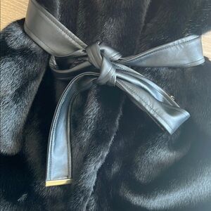 Elegant black faux fur vest with a sleek belt. Perfect for adding a touch of luxury to any outfit.