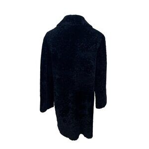 This Black Faux Fur Women's Long Coat has a soft, luxurious texture. Features a button-down closure, long sleeves, and a roomy fit for cozy warmth. Excellent used condition with no flaws or defects noted, offering durability and style. Without tags. Perfect for cooler weather layering and versatile styling.