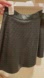 Black Faux leather A-line mini skirt with a diamond cross-stitch pattern, back zipper, soft inner lining, and a good amount of stretch to it. Size M. One Clothing.