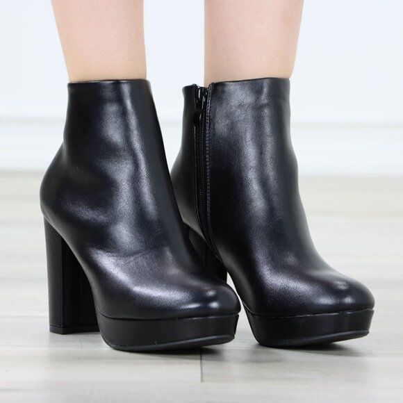 Black Faux Leather Ankle Boots Side Zipper Platform High Heels