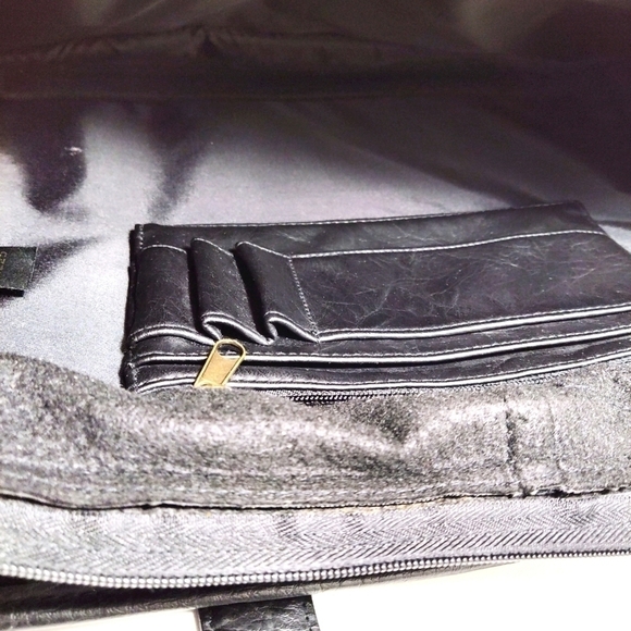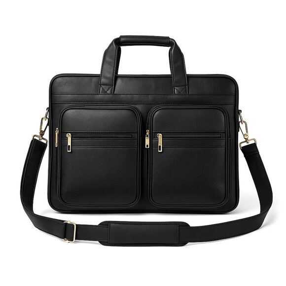 Black Faux Leather Briefcase Messenger Bag with Multiple Zipper Pockets
