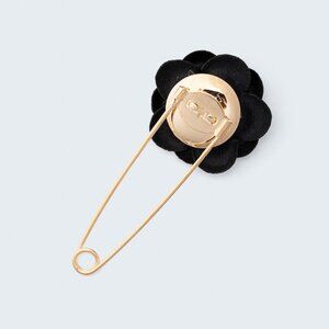 Black Faux Leather Camellia Charm Bobby Pin/Brooch