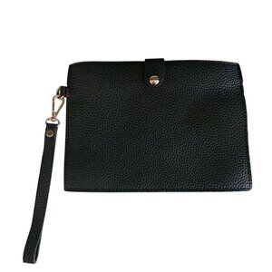 Black Faux Leather Clutch Wristlet With Gold Ring Closure