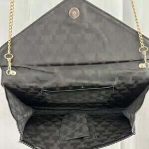 Black Faux Leather Envelope Crossbody Purse Bag w/ Gold Chain