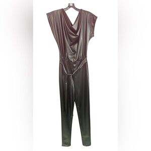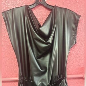 Sleek black faux leather jumpsuit. Perfect for a night out.