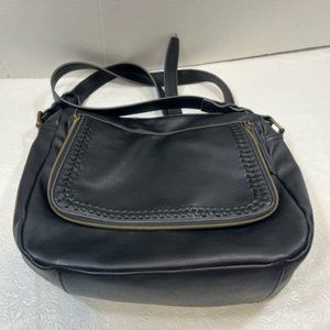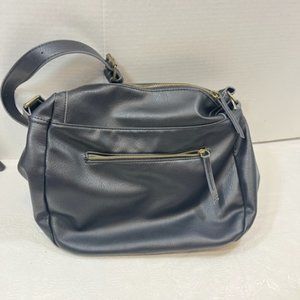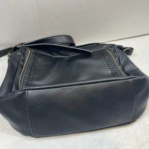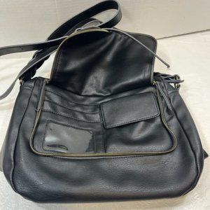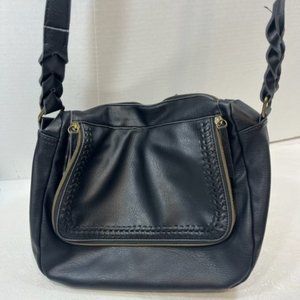 Black Faux Leather Messenger Shoulder Bag Crossbody Adjustable Zip Around Front