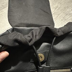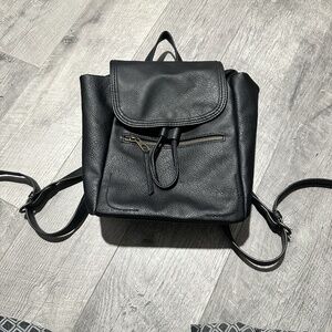 Black Faux Leather Mini Backpack Bag Pockets Zipper