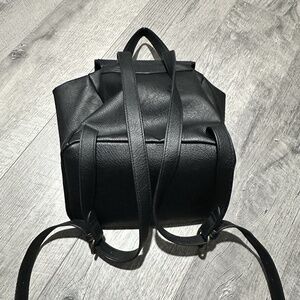 Black Faux Leather Mini Backpack Bag Pockets Zipper bronze travel work school