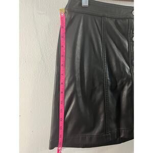 This stylish black faux leather mini skirt is perfect for a night out or a casual day. The skirt is made of high-quality faux leather that looks and feels great. It is a size M and will fit most women.