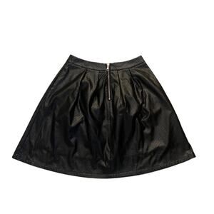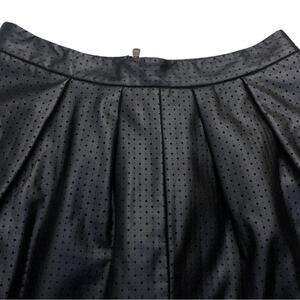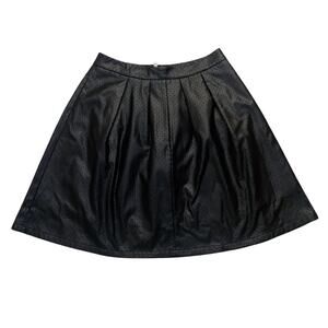 Black Faux Leather Short Pleated ALine Skirt Size 2P Petite Cutout High Waist