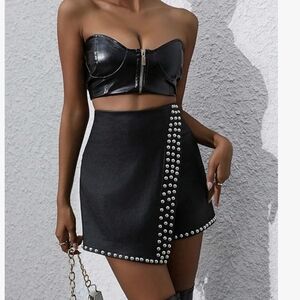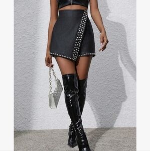 Elevate your style with this chic black studded mini skortt. Perfect for a night out, this skirt adds an edgy touch to any outfit. Only worn once. EXCELLENT CONDITION!!