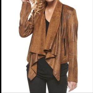 Black Faux Leather / Suede Jacket with Decorative Zippers Large