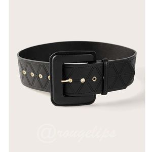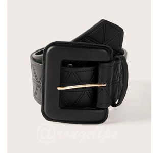 Black Faux Leather Textured Quilted Belt Squared Buckle