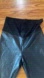 Sleek black faux leather leggings. Perfect for a stylish maternity look.
