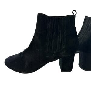 Black Faux Suede Ankle Boots Heeled Forever 21 Size 9 Round Toe Pull On