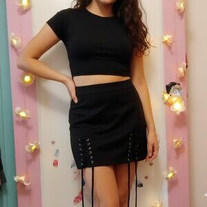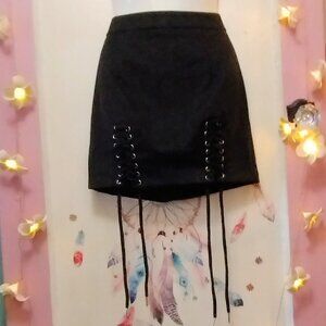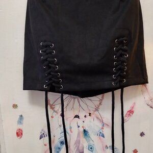 Black Faux Suede (S) Corset laced Mini