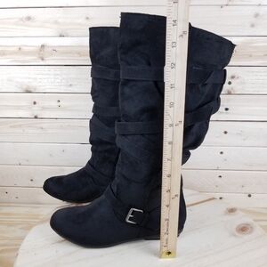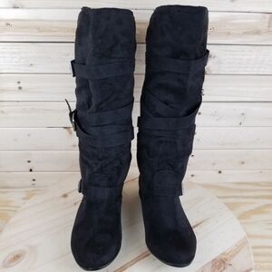 Black Faux Suede Strappy Biker Boot Women's 6 US Pull-on Buckles NEW Bongo ELLIE
