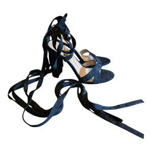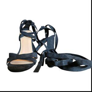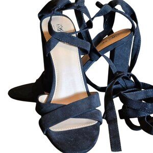 Black Faux Suede Wrap Around Strap Heel sz 8
