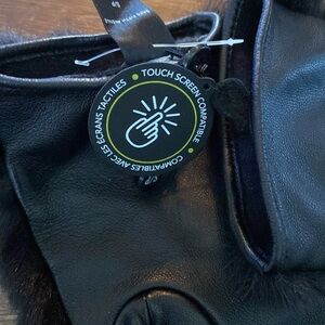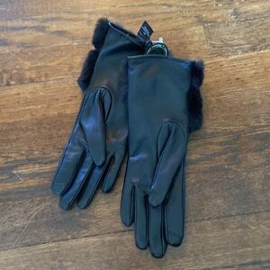Never worn black faux leather with faux fur gloves for women. Have touch screen compatibility on the finger tips. Size small