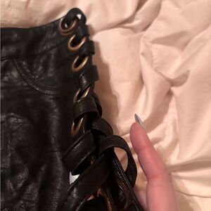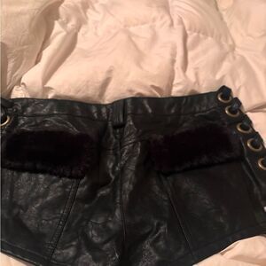 Elevate your style with these chic black faux leather shorts. Perfect for a night out or a casual day, these shorts offer a sleek and modern look.