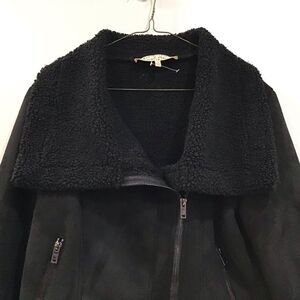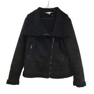 Black Faux Suede Faux Sherpa Moto Jacket, Size M