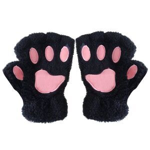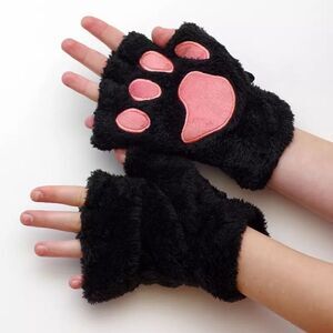 Black Fingerless Cat Paw Gloves. Cat paw design on the front. Plush & soft. Fingerless style. Perfect for cold weather, birthday parties, animal cosplay, & Halloween costumes✨